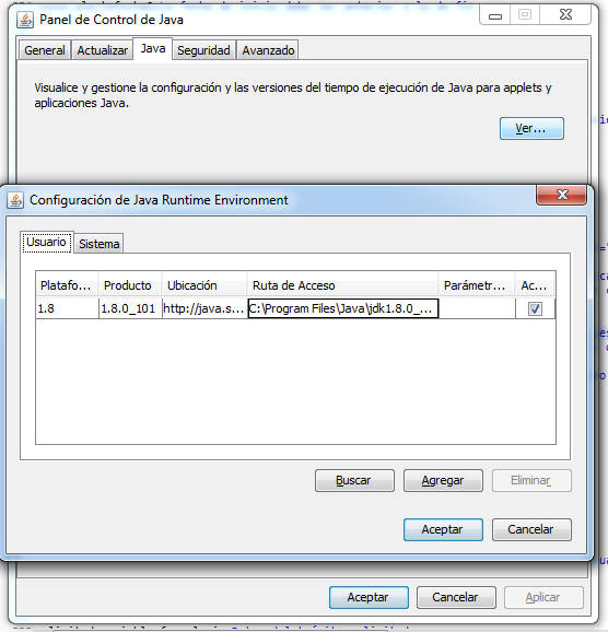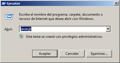 - Verifíquelo usted en su sistema operativo entrando en Inicio / Panel de control / Java en Windows. O bien Inicio / Ejecutar y escriba javacpl.exe.